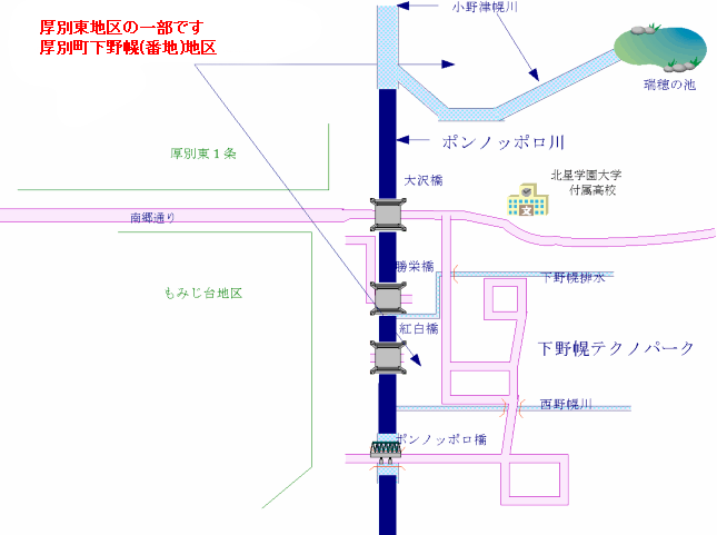 厚別東の中央にあり、もみじ台通りの南側に添って流れています。